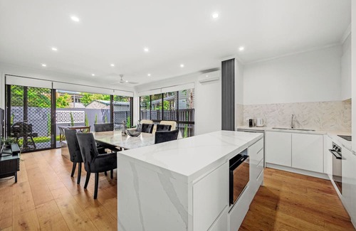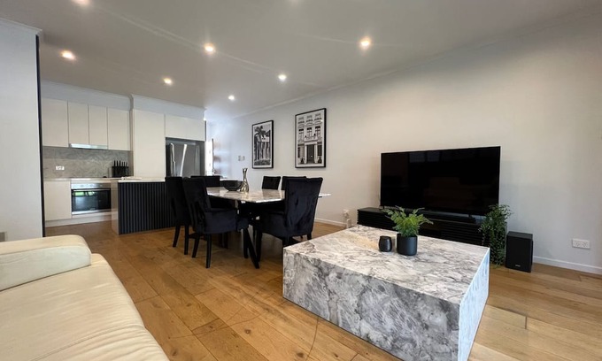 A luxurious designer townhouse made for both getaways and extended escapes. Enjoy generous indoor-outdoor living, peaceful bedrooms, and spaces for everything from intimate dinners to summer BBQs. With room for family, friends and furry companions, plus secure storage, garage parking, public transport, and walkable cafés, parks and markets — it blends the comforts of home with the luxury of a getaway.