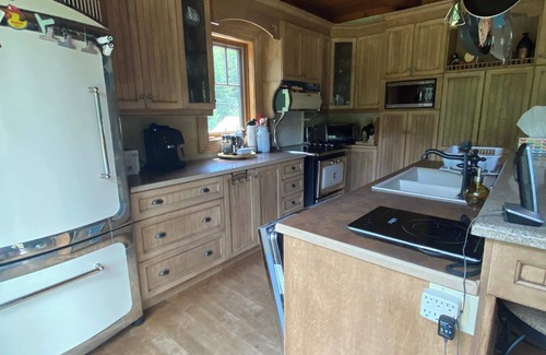 Haven of Peace can host up to 8 guests and is designed to provide a carefree stay surrounded by nature. Whether you’re working remotely, cooking with friends, reading by the wood stove, or enjoying the outdoors, everything has been thoughtfully prepared for your comfort.