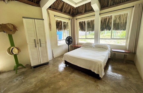La Felicida is a beautiful Beach Front Cabin for lovers of nature, silence and tranquility. It has more than 220 m2 of covered area with high palm roofs which always keep a pleasant temperature. Enjoy this off grid hide away surrounded by coconut trees, sea grape bushes, flowers and birds