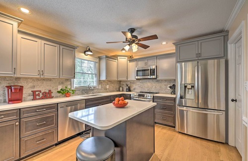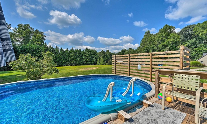 Tranquil woodsy retreat meets contemporary living at this Browns Summit vacation rental, ideal for visiting families, holiday celebrations, and travelers with pets. This 3-bedroom, 2-bathroom home is teeming with amenities: from the fire pit to the above-ground pool to the outdoor dining area to the game room to the spacious living room, there is plenty for everyone to enjoy! Watch the beautiful game at Bryan Park Soccer Complex or get inspired at the Greensboro Science Center.
