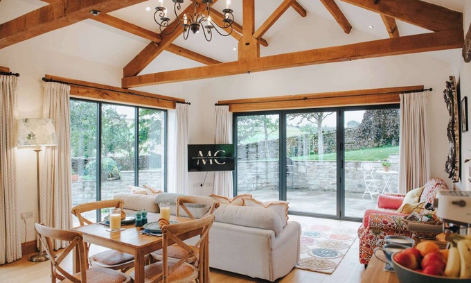 Open the large bi-fold doors and step onto your private terrace, where rolling hills stretch out before you. Enjoy a morning coffee or evening glass of wine as the sun sets over the Yorkshire Dales.
