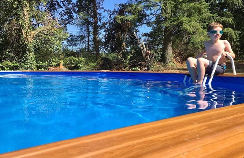 Yes, this Peaceful Countryside Home has a swimming pool. Check the Facility Overview section for details about the pool and other available facilities.