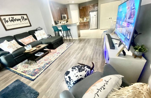 Kick back and relax in this calm, stylish space. Inside a gated community, right next to a peaceful creek, this 1-bedroom/1 bath has everything you need for a long-term stay or a quick night getaway. A full kitchen, pullout couch, digital fireplace and laundry facilities make our Creekside Cottage a perfect getaway. This private guesthouse is ready for you! We take pride in making you feel like home away from home. Separate entrance with shared driveway parking so you can come and go as you please with extensive cleaning protocols.