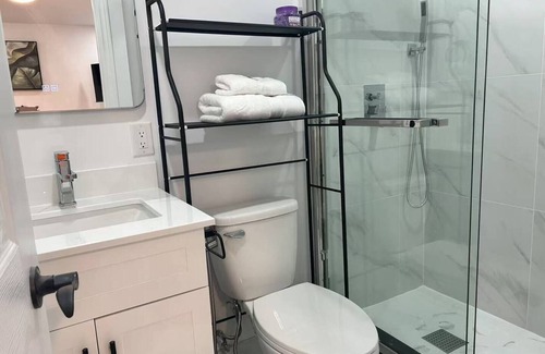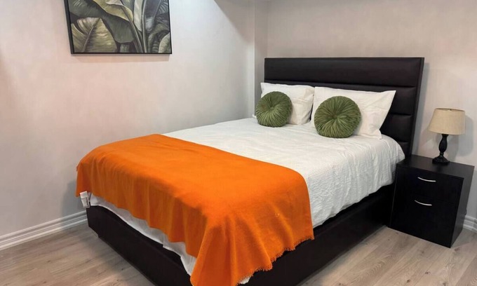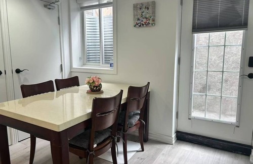 Brand new and bright basement apartment in Ajax, Just minutes’ drive to waterfront and conservation areas. Walking distance to outlet shopping mall, restaurants, and trail. Golf center, race track, and casinos are within 10-minute drive. Ski resorts and Toronto Zoo are within 20-minute drive. Separate entrance, self check in. One bed room with attached bathroom, and queen-size bed. Living room with a powder room has futon which can be converted to a sofa bed. Private Kitchen and laundry.