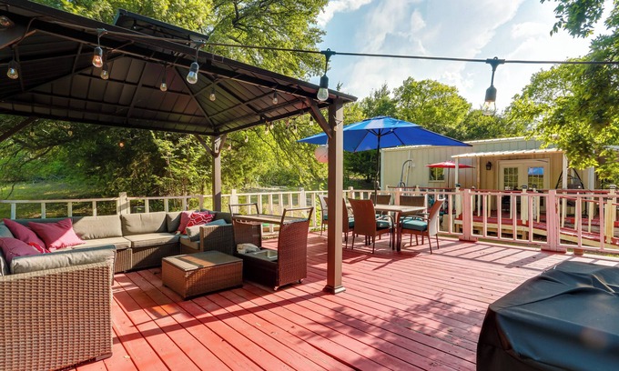 Live out your farmhouse dreams when you book a stay at the 'LoneStar on Majestic Acres Ranch.' Situated on a spacious 16-acre property with a private deck, this 2-bedroom, 1-bathroom vacation rental guarantees a relaxing stay in Van Alstyne. Although you'll be provided with privacy, you won't have to travel far for exciting attractions in the Dallas area, including wineries, museums, and outdoor adventures!
