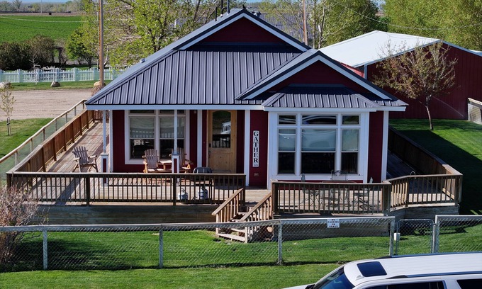 Nestled amid vast farmland, this retreat is located one mile down a scenic dirt lane, offering privacy and serenity. While the road can get muddy when it rains or snows, the journey is well worth it—leading you to breathtaking mountain views and unobstructed sunrises to the east and sunsets to the west.