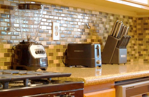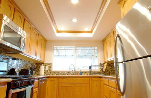 This home has a 65-inch Smart TV, 2 sofa beds each with a queen size mattress, Wi-Fi, Towels, Full Kitchen, Dishwasher, Refrigerator, Stove, Sink, Microwave, Air Fryer, Coffee Maker, Cooking Ware, Plates, Cups, and Utensils.