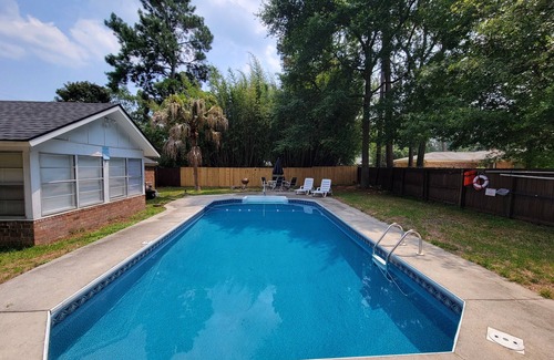 This home is in a very safe/quiet residential area with an outdoor pool, grill, large fenced yard, video/board games, and many more amenities provided for your enjoyment. It is a 3 bedroom and 2 bath (1 with shower/tub and 1 with shower) vacation rental home. The home is just mins away from Fort Stewart Military Base. Looking forward to hosting you.