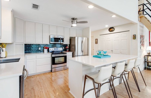 You will have many amenities, such as an open-concept living area, a newly renovated (spring 2023) full kitchen with stainless steel appliances, a dining room table with seating for everyone, and plenty of room for the whole group. After a long day of discovery, sit on the patio or spacious balcony and grill dinner. The bathrooms were also recently renovated.
