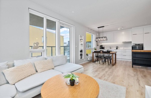 This peaceful, newly built apartment next to Sky Lagoon is the ideal place to relax and unwind after a day of exploring Iceland. Located just a 5-10 minute drive from downtown, it’s in a quiet, serene neighborhood. Brikk Bakery is conveniently across the street, and the beautiful Sky Lagoon is only a few steps away. The apartment is stylish yet cozy, offering a comfortable, homey feel while you travel.
