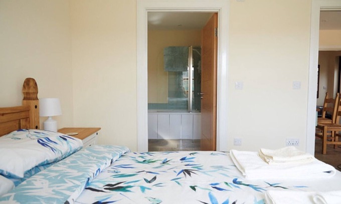 Newly and purpose built holiday cottage in traditional stone. Stone floors with underfloor heating and wood burning stove making a cosy stay for both dogs and humans. Both bedrooms have ensuite bathrooms, one has a walk-in shower, one has a bath with shower. The bedrooms have a choice of a king bed or a twin.
