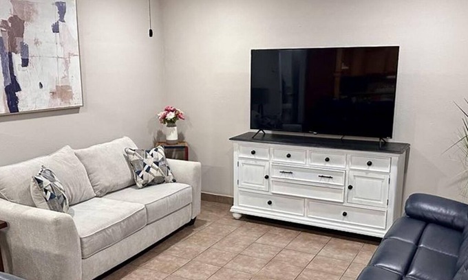 This cozy retreat is a great place to relax and unwind. It's located in the charming small town of Raymondville, Texas, which is known for its fishing and hunting opportunities. Our place has one bedroom with a queen bed, a living room with a sofa bed, and a well-equipped bathroom. It's also equipped with modern amenities like WiFi, heating, air conditioning, and a washer and dryer. If you're into golf, the Raymondville Golf Course is nearby.