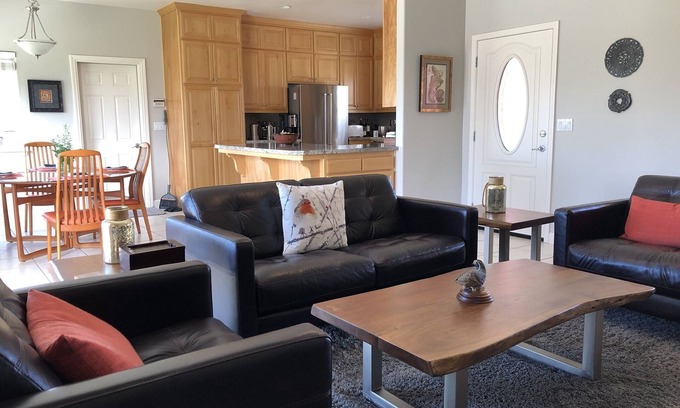 The home features two spacious king master suites, perfect for couples or friends traveling together, each designed to offer restful nights and plenty of privacy. Comfortable leather seating and an open floor plan make the Casa feel warm and welcoming.
