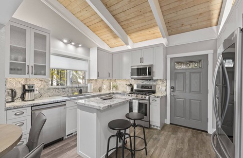 Experience romance and comfort in our two-bedroom, one-bathroom retreat, perfect for couples seeking a getaway or saving for that once a blue moon family vacation. Indulge in the luxury of queen-size beds with memory foam mattresses, surrounded by the charm of barn-style doors and LED dimmable lighting. Recently remodeled, our home boasts modern amenities, from a well-equipped kitchen with a toaster, coffee maker, and blender, to a thoughtful array of toiletries. Enjoy board games, streaming services, and the convenience of a washer and dryer. Whether you're grilling on the propane BBQ pit or exploring nearby beaches, ski resorts, hiking trails, restaurants, and grocery stores - everything you desire is within a 10-minute drive. Make lasting memories in this haven designed for relaxation and adventure. WC STR Permit: WSTR24-0038