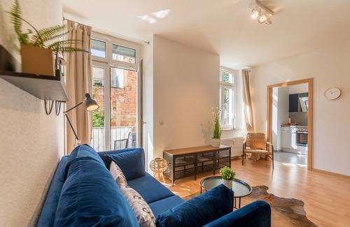 Feel at home in our lovingly and modernly furnished apartment for up to four people. It is located in the trendy Südvorstadt district of Leipzig on a quiet side street of the famous pub mile “Karli” (Karl-Liebknecht-Str.). Therefore, you will find the hustle and bustle of the pub, cabaret and alternative scene in the immediate vicinity. In addition to the various options for going out, a diverse cultural program is offered here. Parking is possible on the roadside, but there is also a good & fast connection to the center by public transport. Fast WiFi, a fully equipped kitchen with stove, oven, dishwasher, fridge with freezer, kettle, all utensils & basic food items as well as a bright bathroom with walk-in shower and hairdryer are available and make the apartment also suitable for longer stays. Tea towels, dishcloths or Sponges, kitchen rolls and cleaning agents are also available. In the comfortably furnished living room there is a comfortable sofa bed that can be quickly converted into a cozy bed. A flat screen TV is available for relaxed evenings. The sunny balcony invites you to linger.
