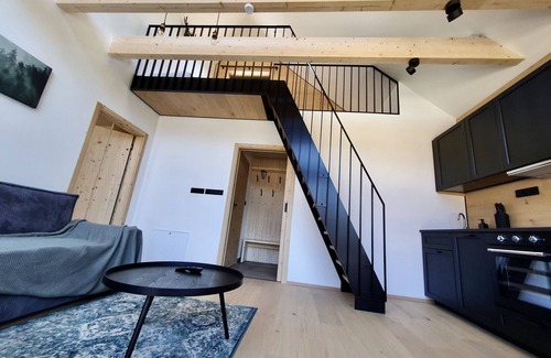 Imagine celebrating your vacation amidst tranquility and stunning nature, surrounded by mountains and forests, while staying in the bustling mountain town of Pec pod Sněžkou. This brand-new building features two fully equipped apartments and is a true architectural gem. It is perfectly situated between the town center and the ski slopes, both within walking distance, or you can take the ski bus that stops right behind the house.