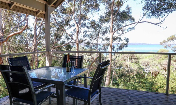 Our luxury two bedroom chalet was specifically designed for couples seeking modern conveniences, airconditioned comfort and spa bath on that romantic getaway or honeymoon, with 180 degree waterfront views.