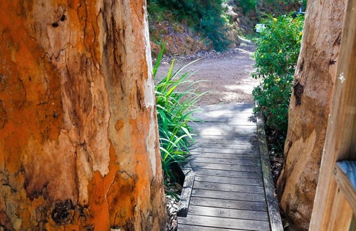 Early morning and late afternoon provide spectacular vistas from the Cottage deck. As the sun sets charge your wine glass and relax looking out over the inlet whilst the setting sun bathes the giant karris in golden lights.