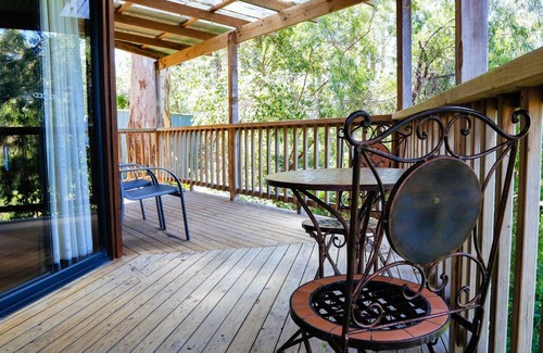 Our romantic rustic cottage sleeps two people, has reverse cycle air conditioning, a cosy wood fire, spa bath, is on one level and has a QS bed, water views and a wraparound deck where you can relax with your favourite tipple.