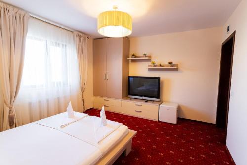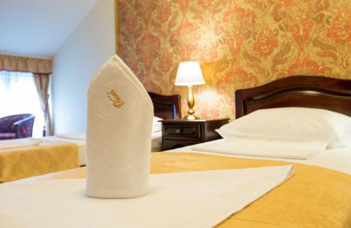 Pensiunea Oscar in Focşani provides accommodations with a garden and a bar. Among the facilities of this property are a restaurant, a 24-hour front desk, and full-day security, along with free Wifi throughout the property. The accommodation provides luggage storage space and a concierge service for guests. The guest house will provide guests with air-conditioned units with a wardrobe, a safety deposit box, a flat-screen TV, and a private bathroom with a shower. At the guest house, every unit has bed linen and towels. A children's playground is also available at the guest house, while guests can also relax on the sun terrace. Bacau International Airport is 61 miles away.