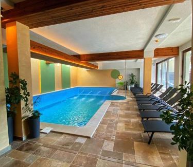 Pensiunea Senin offers a sauna and free private parking, and is within a 10-minute walk of Ursu Lake. The guest house features a spa experience, with its hot tub, spa facilities, and fitness room. Free Wifi is available throughout the property, as well as a terrace and a restaurant. The property also offers accommodation for disabled guests. The guest house offers a flat-screen TV and a private bathroom with bathrobes, slippers, and shower. The units include air conditioning, and some units at the guest house have a balcony. At the guest house, all units are allergy-free and soundproof. Buffet and continental breakfast options with warm dishes, local specialities, and fresh pastries are available. There is an on-site bar. Pensiunea Senin also provides a pool with a view and a steam room for guests to relax in. You can play darts at the accommodation, and the area is popular for walking tours. Skiing and hiking can be enjoyed nearby, while ski-to-door access and ski storage space are also available on-site. Târgu Mureș Transylvania Airport is 45 miles from the property.