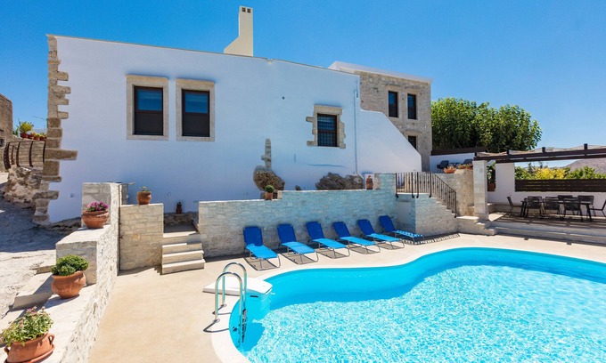 Penthe Manor House is set in 560 m2 outdoor area with a 35m2 private swimming pool (1,40 metres deep) .The pool terrace is equipped with sun beds, so you can relax all day long enjoying the Cretan sun! Electric BBQ facilities are also available, offering a stylish al fresco space for enjoying an evening tipple in the lovely shaded outdoor dining area with a pergola.