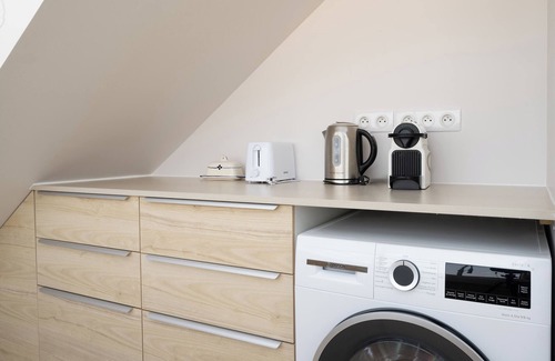 - a fully-equipped kitchen with skylight (barbecue, coffee machine, toaster, blender, kettle, oven, microwave, hob, dishwasher, fridge, freezer),