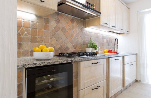 The terrace is furnished with comfortable white sofas and loungers, covered from the sun by a big white tent, fully retractable glass doors opening out to the terrace, and a brand new heated jacuzzi (2 mt x 3 mt), a garden with fragrant Mediterranean plants and a seasonal herb corner that you can use in your recipes, a very distinctive all-stone outdoor shower with hot water and outdoor kitchen with large stone barbecue. Wi-Fi, radio, DVD and Blu-Ray and safety deposit box. Two SUP are also included in the price.