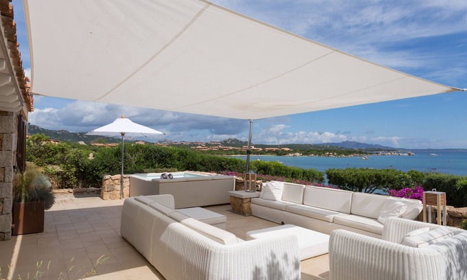 Every detail of the décor is perfect, with only local materials and design furniture to create just the right mood. The patio is the hub of the house, providing a fluid and homogeneous continuity between the indoor and outdoor areas: the shimmering, fragrant sea of Sardinia can be enjoyed in the ample open space created by the lounge, patio and terrace.