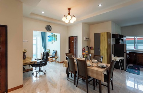 This accommodation is made for family stays. 5 minutes from the lively city center of Ao Nang, the villa CHANAYA and these 3 spacious rooms welcome you in a peaceful setting. The neighborhood is very quiet and secured by other similar villas. The 3 bedrooms and 3 bathrooms surround the central dining room and its super functional kitchen. The pool behind the villa is quiet and refreshment is guaranteed after a busy day. Private parking in front of the house with gate.
