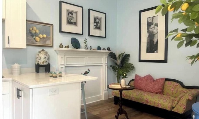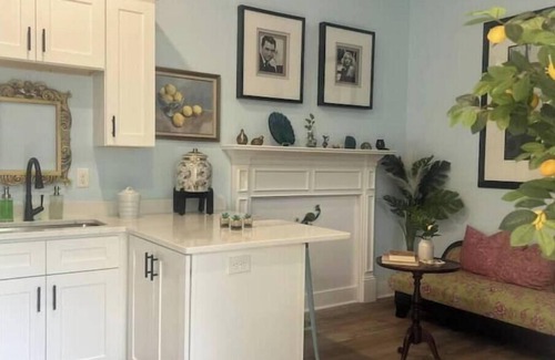 We have created a peaceful haven with decor reminiscent of the Golden Age. Feel the comforts of home while vacationing in this lovely space. We have two Hollywood themed bedrooms, a comfortable sitting area, and kitchenette featuring a full size refrigerator and single counter-top electric burner.