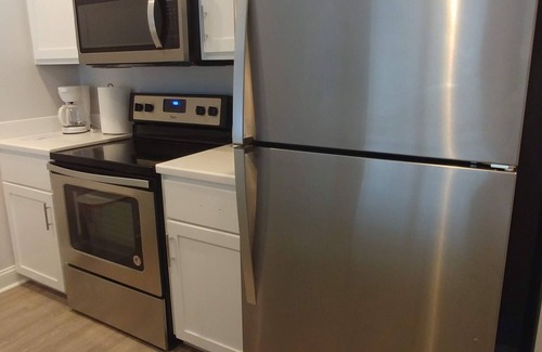 Includes dishwasher, refrigerator with ice maker, oven, stove, microwave, coffee maker, linens, towels, dishes, and fully equipped kitchen. 32" Smart TV in the bedroom and a 55" Smart TV in the living room. Free WiFi. The coffee maker is the filter (drip) type.