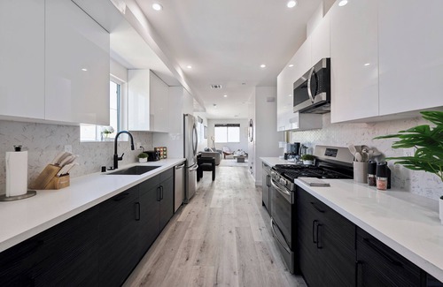 Explore your Hollywood retreat! This modern townhouse hosts up to 7 guests across 3 bedrooms. Work in the designated area, relax in the chic living room, and cook in the well-equipped kitchen. Close to dining, shopping, and entertainment, your Hollywood getaway starts here!