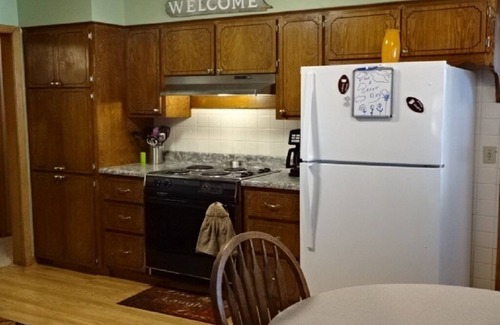 House has 3 bedroom, 1 bath, and large living room and kitchen. Two bedrooms with queen beds. 1 bedroom with 2 twin beds. Large living room has TV and stereo with ,WiFi and internet. Washer and dryer in basement utility room. Patio and barbecue grill in back of home.