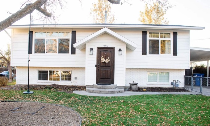 Welcome to our spacious 3-bedroom home, thoughtfully designed for families seeking a comfortable and convenient stay in Utah Valley. The cozy living room, fully equipped kitchen, and sunlit bedrooms provide a warm and inviting atmosphere. The beautiful backyard features a patio and a fully-fenced play area, complete with two tree swings on a mature shade tree, making it an ideal space for children to play safely.
