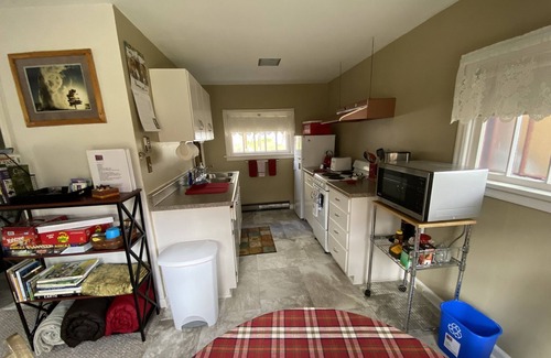 Access to Yellowstone Park from our north entrance was fully restored October 30, 2022 with a beautiful new road! Our sweet backyard cottage is nestled among the fruit and flower trees of the yard. It is easily within walking distance to the grocery store, coffee, shopping, restaurants, laundromat, post office, and local arch park events. It is at the north entrance to Yellowstone Park, as is all of Gardiner. The cottage is in the heart of town but shielded from the main street by the owners' home. The yard is shared with the owners but privacy is afforded by the layout. The owners' home was built in 1930 and its cottage was built in 1940 by former owners, the Eastons. It is believed that their intent was to rent the cottage to visitors of Yellowstone, making it a very early vacation rental in this town. The cottage is a perfect fit for two people who want to day trip to northern Yellowstone, book local activities like rafting, biking, horseback riding, and return to a simple, basic, clean environment to relax. Our guests note that the well cultivated green and floral landscaping add to the charm and character of their experience. The stucco cottage still has the details of its early history with the old style glass door knobs and kitchen cabinets. There is a comfortable queen bed, sitting area with Smart tv, eating area, full but small kitchen, and full bathroom. It is clean, well cared for, and you are welcome! We keep our reservation calendar updated to the minute and our description on this page accurate. So as you're reading this page if Lilac Cottage sounds like a good fit for you and if the dates you want are open on our calendar and you have no questions, you are welcome to book directly without contacting us (use Instant Booking option). Just follow VRBO's process with your credit card. We'd be in touch immediately upon booking, through VRBO. If you do have specific questions not answered here, please email Eleanor through VRBO. NOTE: Because the lilacs and other historic bushes and trees were planted in 1930s and 40s, Tom is constantly pruning and removing sections for new growth.