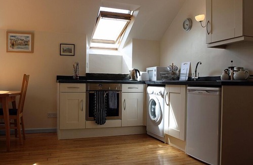 A fully equipped kitchen with induction hob, electric fan oven, fridge and washing machine are available for your use together with a microwave oven.