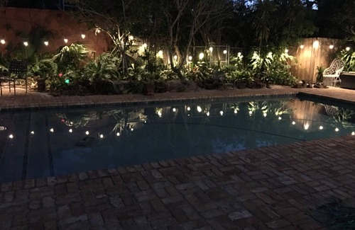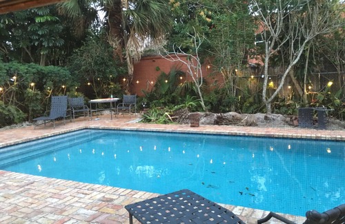 The house is in Flamingo Park Historic District, Less than 10 minutes from Ocean Drive, Worth Avenue, Mar-A-Lago. 2 bedroom 2 bath house with a great layout and perfect new pool to relax and unwind in. Large fully equipped kitchen. All utensils, silverware and dishes. Everything you need to cook and serve a great meal. The living/dining/entertaining area is a very large open space. The Bedrooms are separated by kitchen and conversation area with lots of privacy for couples traveling together or older children. The house is convenient to everything West Palm Beach has to offer. Great neighborhood for bicycle riding, walks to nearby restaurants, and City Place is a mile away. The new Palm Beach Outlets Mall is 3 1/2 miles from the house.