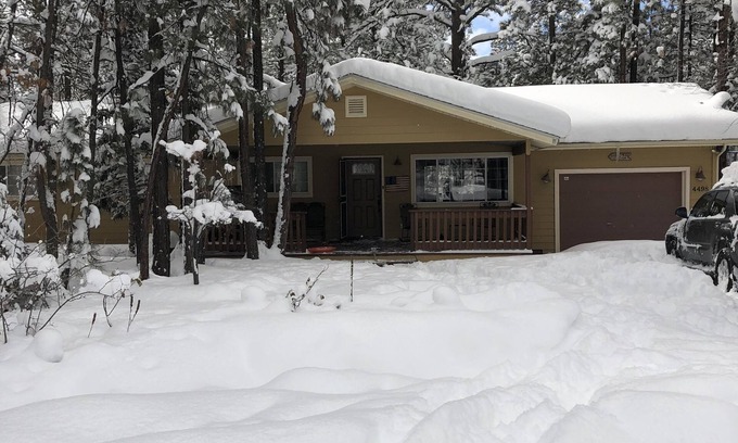 The Pine Tree Lodge is the perfect cabin for your peaceful getaway. Nestled in the tall pines, near Pinetop Country Club, this newly remodeled four bedroom, three bathroom home features TWO master suites and TWO family rooms. Located on a large, landscaped 3/4-acre lot with a fenced yard, this relaxing retreat is just minutes from hiking, golfing, horseback riding, ATV trails, fishing, Hon-Dah Resort Casino, snow skiing, dining, shopping and more; it is also just 40 minutes from Sunrise Park Resort. Whatever season it may be, enjoy grilling on our back deck, or soaking in the hot tub; in the fall/winter, unwind by the stone wood-burning fireplace after a day of exploring or skiing. Both living rooms have a TV; WiFi and satellite are complimentary. Well-behaved dogs are welcome with prior approval at $60 per dog, Maximum 3 dogs. The pet fee is to be paid directly to the owner via Zelle, Venmo or PayPal. If using Paypal, please use the "Friends and Family option."