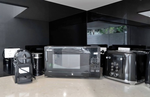 The home features three beautifully styled bedrooms, each with leafy outlooks and air conditioning for year-round comfort. The primary suite is a private sanctuary with a king bed, walk-in wardrobe, high-end ensuite, and its own TV. The second bedroom features a queen bed and a private TV, while the third has another queen bed. After a day exploring, soak in the freestanding tub or refresh in the separate shower of the main bathroom, complete with a large vanity and separate toilet. A laundry with a washer, dryer, and stocked essentials adds convenience.