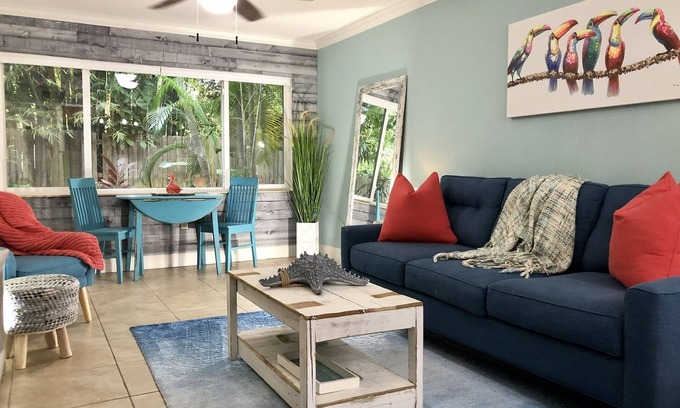 A Short drive or bike ride to Honeymoon Island/Caladesi Island or Clearwater beach. Don't want to drive? The Jolly Trolley stop at Weaver Park is just a couple of minutes' walk away. The trolley runs daily going north to Tarpon Springs and south to Clearwater Beach. Passenger Ferries to Clearwater Beach run from Dunedin Pier on Friday/Saturday/Sunday or daily from downtown Clearwater (free parking). Great way to avoid bridge traffic & beach parking costs!