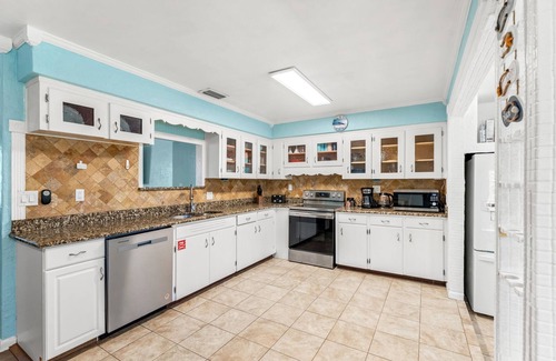 Fully equipped kitchen with updated appliances, generous counter space, and all the essentials to whip up your favorite meals or beach day snacks