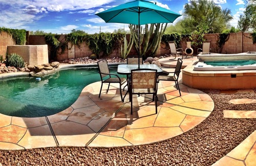 PERFECTLY LOCATED FAMILY FRIENDLY HOUSE with HEATED POOL & HOT TUB! has 3 Bedrooms , 2 Bathrooms, and max occupancy of 8 people. The minimum rental for this property is 1 nights, but this can change depending on the season you plan on staying. Previous guests have given good rated it, and VRBO labeled it a top-rated House because of the excellent services rendered by the owner or manager of this House, and has consistently provided great experiences for their guests. Most families or guests that use it recommend it to their friends and some of them are repeat guests. House has a friendly neighborhood, and the Desert Ridge has interesting places to visit. If you want to learn more about the House in Desert Ridge, such as places to visit and things to do nearby, you can check below to learn more.