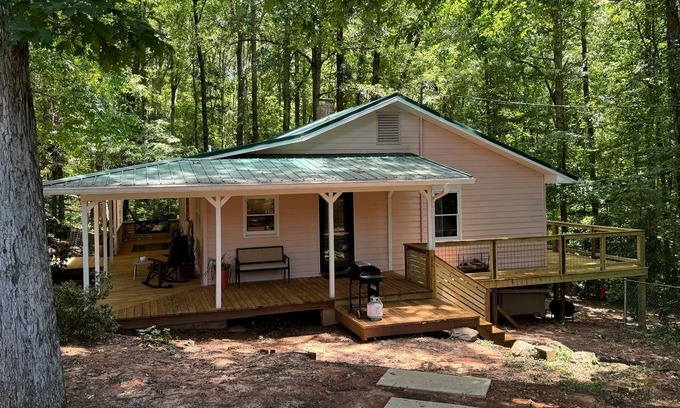 Welcome to “The Peach Fuzz” a fun little pink cabin in the trees, located in Waverly Hall, this quaint 2-bedroom cabin offers a cozy retreat for guests. If you’re looking for a weekend getaway from the city to enjoy some quiet time or a small campfire, this is the place! With 3 queen beds and 1 twin bed, there is plenty of room for 1 or 2 families but still has a cozy vibe. Enjoy the soothing atmosphere, large deck with a view, or the side yard with fire pit. Complete with essential amenities like WiFi, heating, and a hair dryer. Our place is equipped for both long or short stays to make your holiday one to remember.