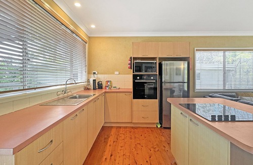Put your feet up and relax at this charming 2-bed beach house in Surf Beach. A leisurely 2-minute walk along a bush path has you arriving at the pristine and dog-friendly Wimbie Beach. Your choice of swimming, fishing, exploring rock pools or just relaxing on the beach taking in the coastal air. A short walk further is popular Surf Beach with local cafes, shops and restaurants. The house is a 10-min drive to explore the picturesque Batemans Bay area and surrounding local attractions.