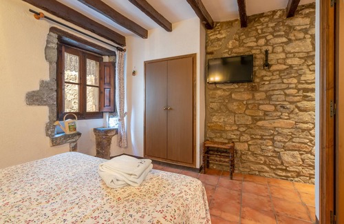 The holiday apartment Can Lo is located in Rupit and boasts a beautiful view of the mountain. The 40 m² property consists of a living room, a well-equipped kitchen, 2 bedrooms and 2 bathrooms and can therefore accommodate 6 people. Additional amenities include high-speed Wi-Fi (suitable for video calls) with a dedicated workspace for home office, central heating as well as a smart TV with streaming services.