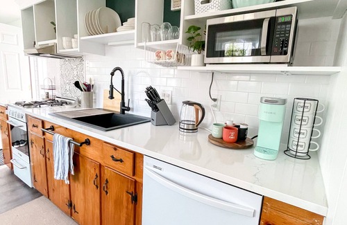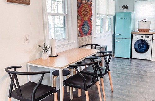 This private 2-bed 1-bath cottage has been lovingly renovated to comfortably sleep up to 5 humans. The open kitchen & living room make the space feel open and airy, and the bedrooms are thoughtfully designed to maximize comfort. All the appliances, furniture, and bedding are brand new for your enjoyment.