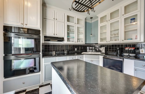 KITCHEN: Cooking basics, dishware/flatware, dishwasher, stove, double oven, microwave, coffee maker