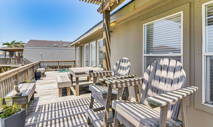 Your next coastal retreat awaits at this Galveston vacation rental! With a sleek interior, fenced backyard, and prime location just a short walk from a quiet section of Bermuda Beach, this 2-bedroom, 2-bath house makes the perfect spot for a serene family getaway. Check out island staples, like Moody Gardens or the Historic Pleasure Pier, enjoy nearby restaurants along Seawall Boulevard, or spend an evening back home taking in beautiful sunset views from one of the private decks.