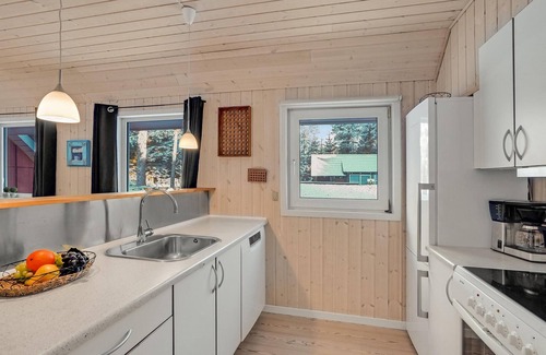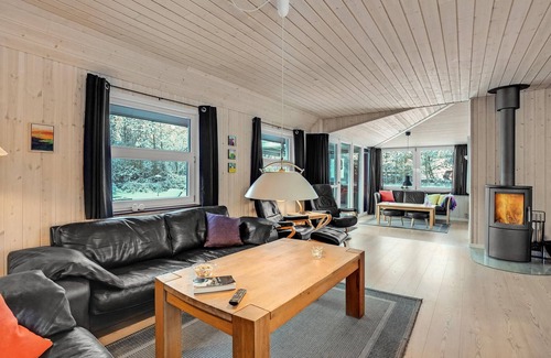 This comfortable holiday home near Vejers Strand offers you everything you need for a relaxing stay with its spacious pool area, whirlpool and sauna. The cosy eat-in kitchen with wood-burning stove invites you to spend time together, while the large terraces, some of which are covered, invite you to linger in the fresh air. The house is situated on a spacious natural plot near an unspoilt wooded area and is equipped to save energy. Enjoy the light-flooded rooms and the tasteful furnishings, which ensure relaxation and a sense of well-being.